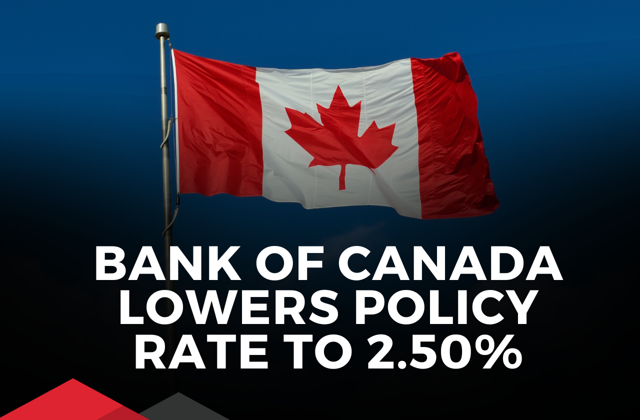 The Bank of Canada lowers policy rate by 0.50 basis points to a new policy rate of...